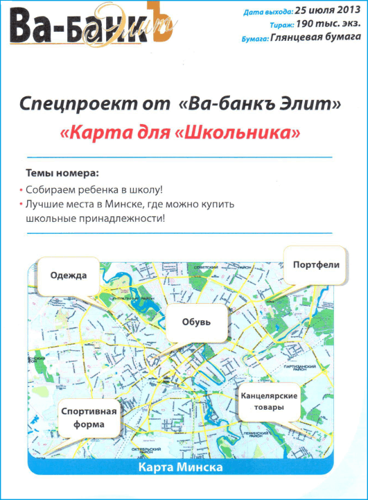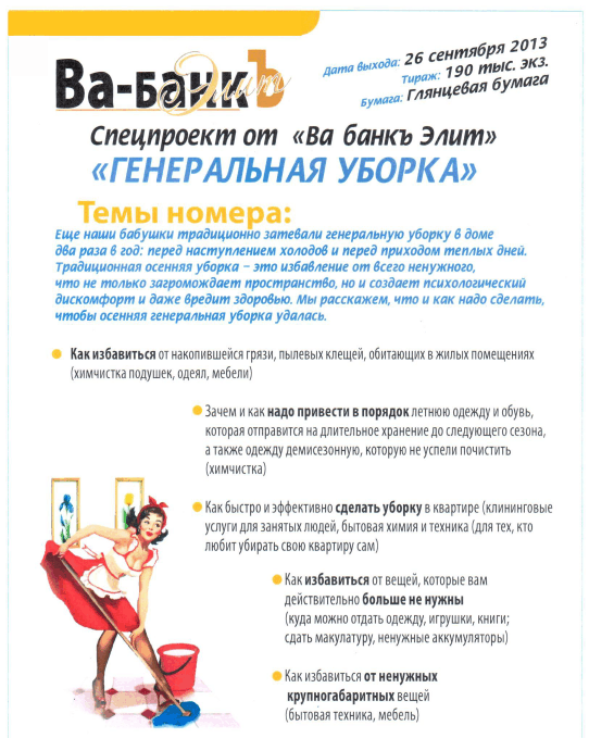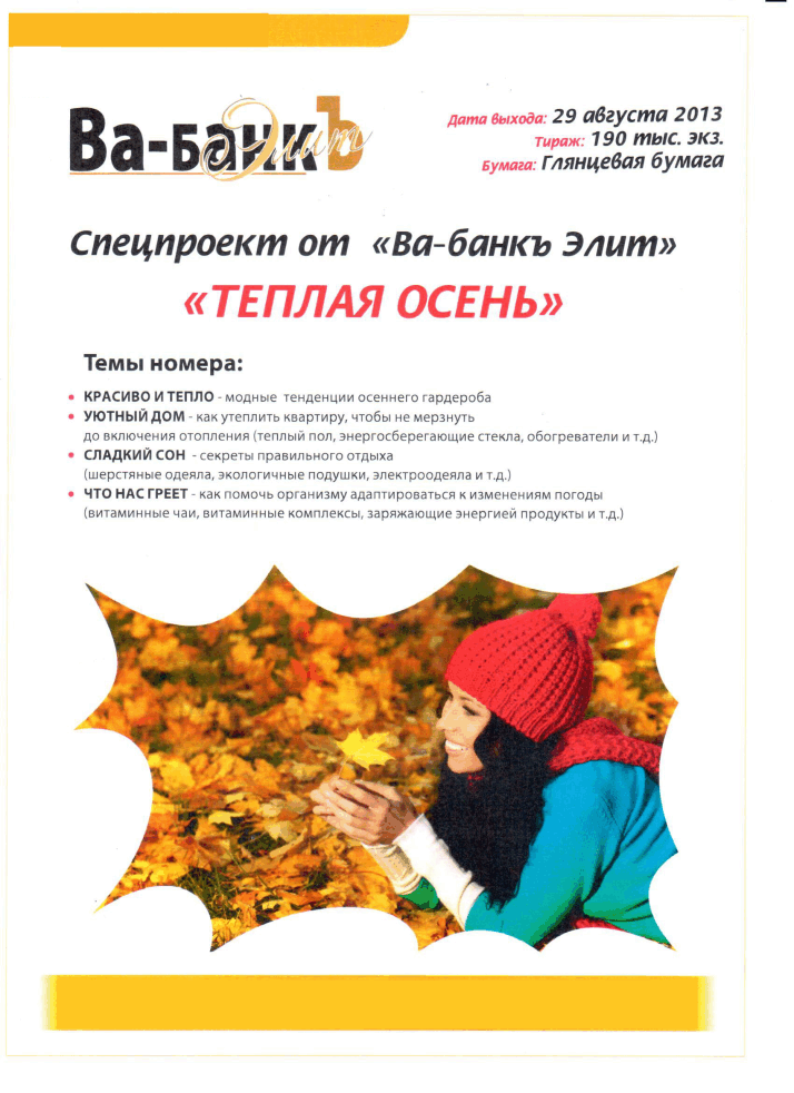 В сентябре месяце в журнале “Ва-банк Элит” планируются спец.проекты на развороте.