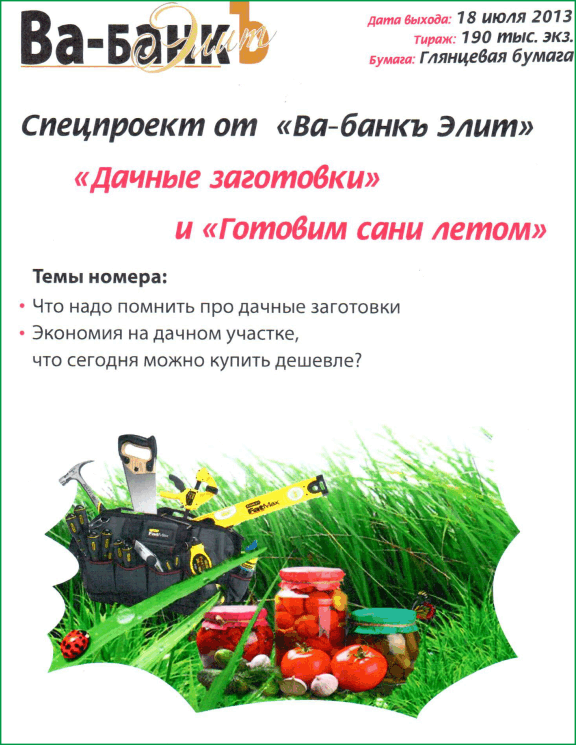 В июле месяце в журнале “Ва-банк Элит” планируются спец.проекты на развороте.