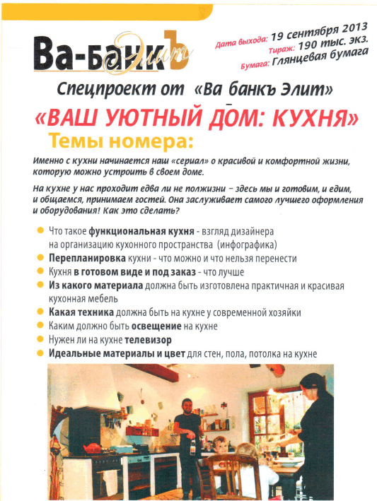 19 сентября спец.проект под рабочим названием "Ваш уютный дом - кухня"