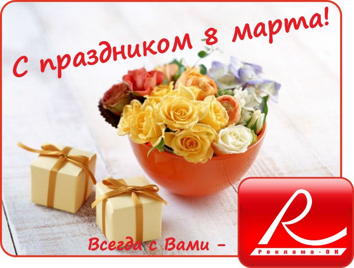 Милые дамы, коллектив "Реклама-ОН" от всей души поздравляет Вас с праздником весны! Всегда сияйте, улыбайтесь и будьте с нами! |