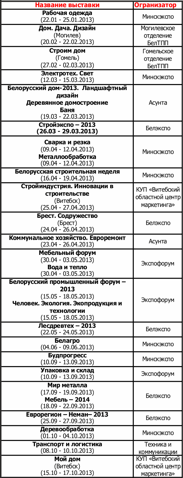 2013-03-28 Выставки на 2013 год.