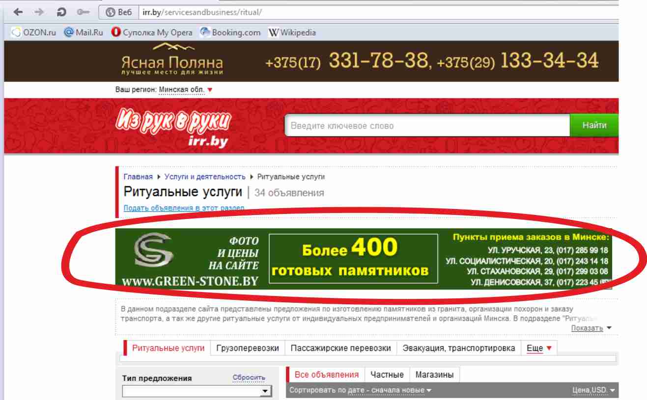 Баннер - возможно выбирать регион размещение (области РБ)